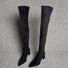 Зимняя мода Женские длинные ботфорты с острым носком Уличный стиль Толстый каблук Вечеринка Стриптизерша Женская обувь