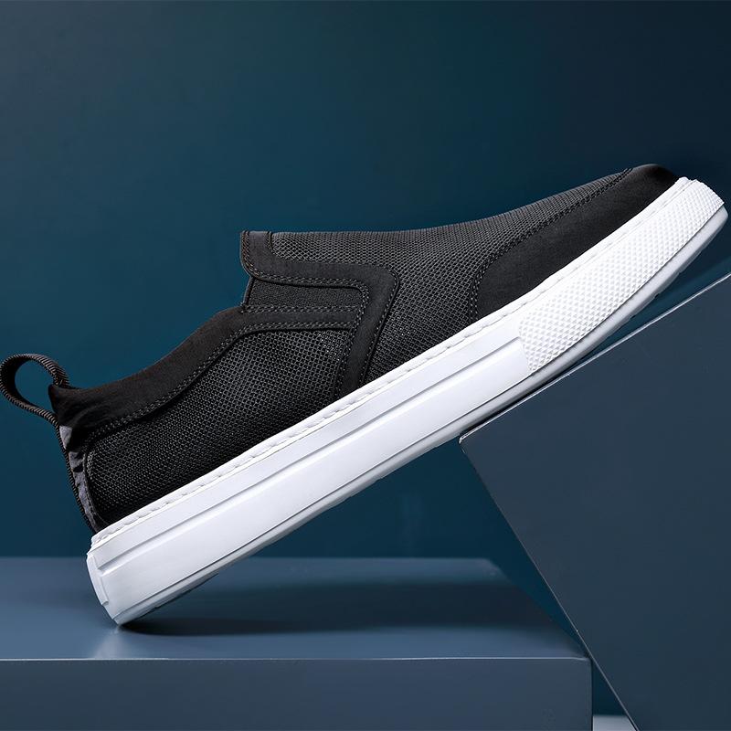Designer New Shoes for Men Air Mesh Casual Shoes Summer Breathable Flat Skateboard Shoes Cool Black Slip-on Loafers