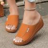 2025 European and American slope heel slippers round head wear new women's cool slippers comfortable versatile light travel