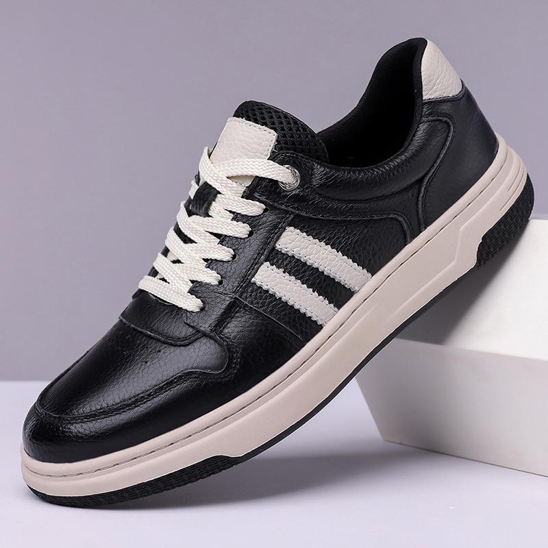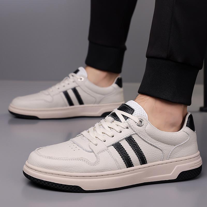 Новая мужская обувь Натуральная кожа Повседневная обувь Модные полосатые плоские кеды для скейтборда Уличные крутые кроссовки