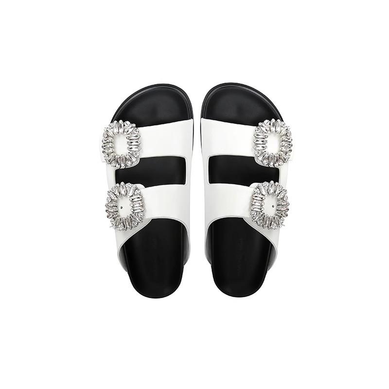 Найди второй волосок! Мода универсальный новый квадратная пряжка стразы кожа двойной ремень повседневные платформа шлепанцы женские сандалии на улице