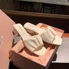 Найди второй волосок! Модные универсальные новые A MIU home плиссированные шлепанцы с квадратным носком, сандалии на плоской подошве, женская уличная обувь