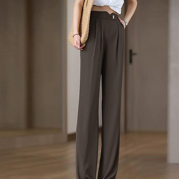 2025 Летние женские брюки с высокой талией из ледяного шелка прямого кроя: Стройнящий, Высокий, Универсальный и Крутой