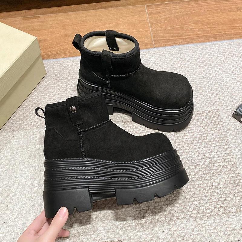 Женские зимние сапоги Нескользящие Теплые Плюшевые Короткие Сапоги Толстый Мех Высокая Платформа Ботильоны 10СМ Замшевая Кожа Массивные Кроссовки