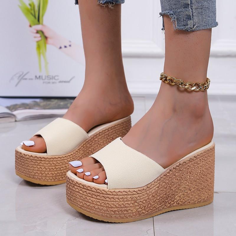 2021 лето новая женская обувь корейская версия маффин толстая подошва крутые шлепанцы женское слово с верхней одеждой танкетка крутые шлепанцы