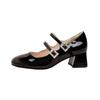 Версия из овчины~ кожаные туфли с квадратным носком, стразами в виде слов и неглубоким вырезом, на толстом каблуке 5 см, женские туфли в стиле французского ретро Мэри Джейн