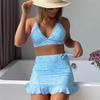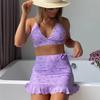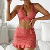 Купальник женский халтер раздельный набор из трех предметов цветочная сетка красная шнуровка юбка бикини костюмы EMA