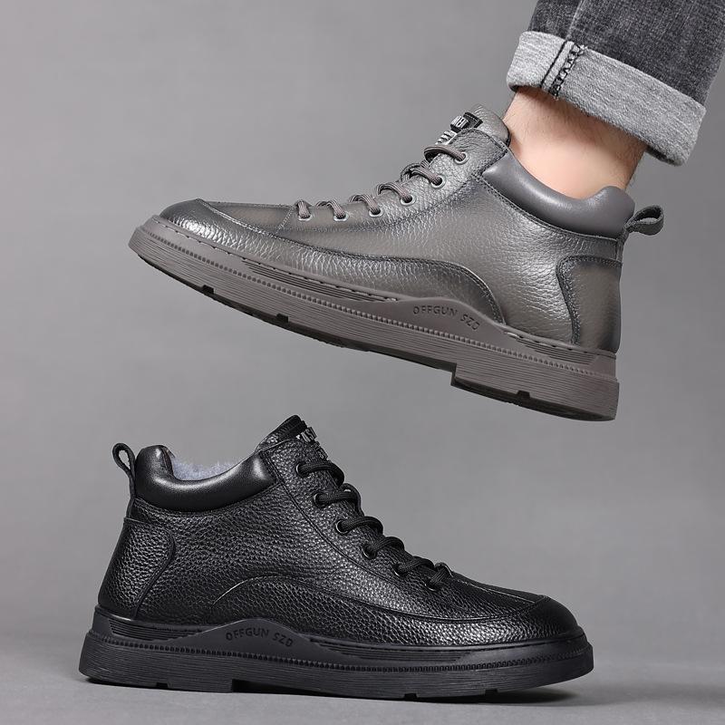 Зимние новые мужские хлопковые туфли кожаные шерстяные теплые мужские туфли высокие повседневные бархатные мужские кожаные туфли — купить товар онлайн с бесплатной доставкой по всему миру!