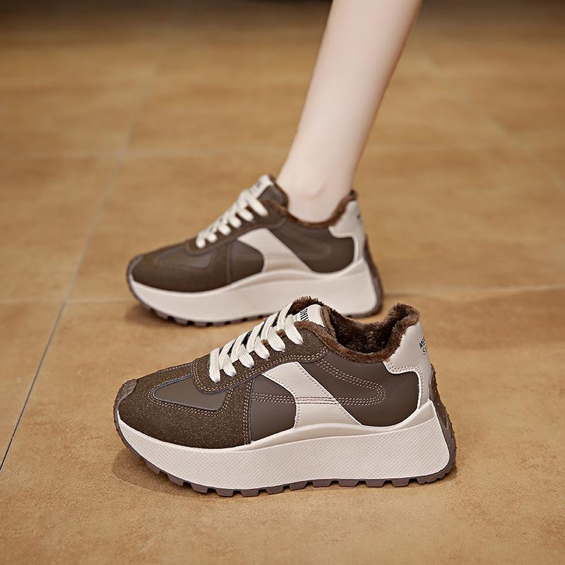 Новая универсальная повседневная обувь осень и зима платформа женская обувь кеды увеличивающие рост повседневная кожаная спортивная обувь студент