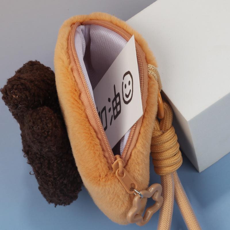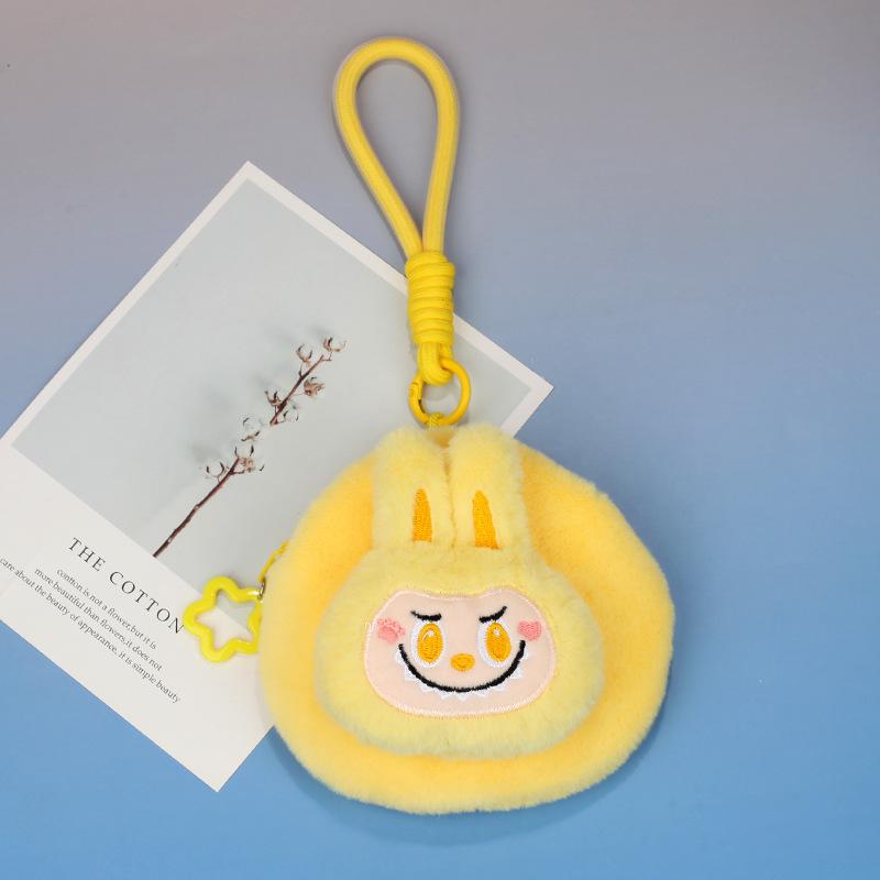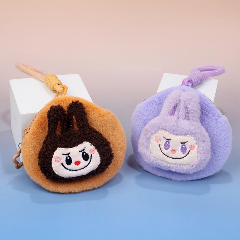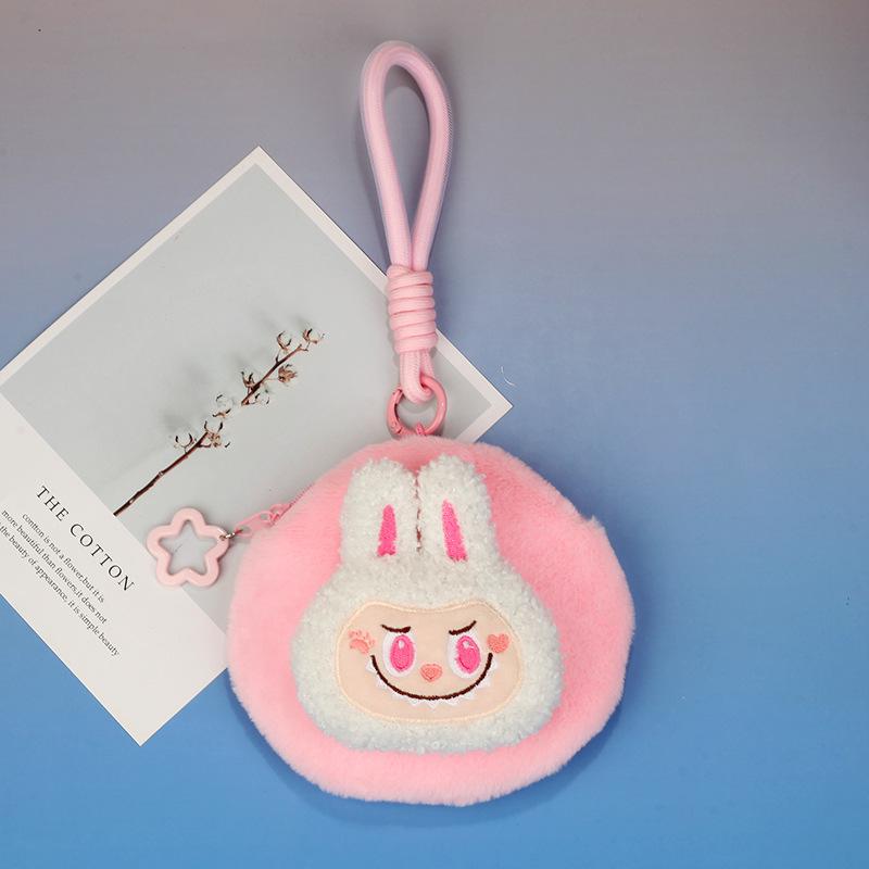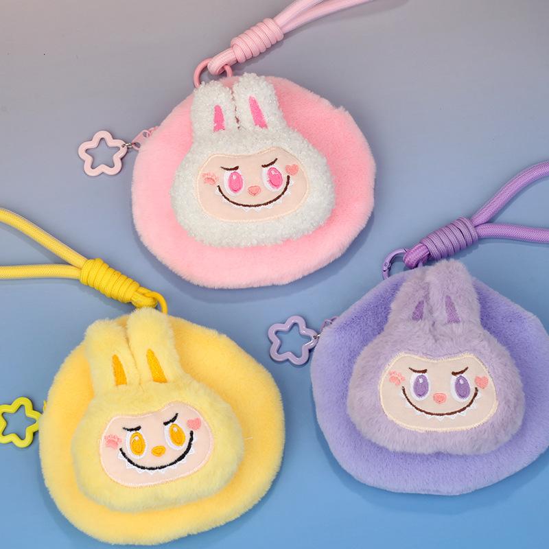 Плюшевая сумка для хранения Labubu, однотонная молния, ремешок на запястье, кошелек для монет, тканевая молния CLE