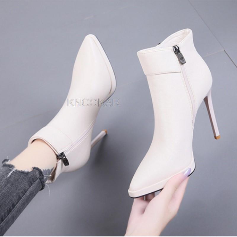 Новые зимние остроносые ботильоны на высоком каблуке с бархатными ботинками, горячий стиль в Европе и одинарные ботинки