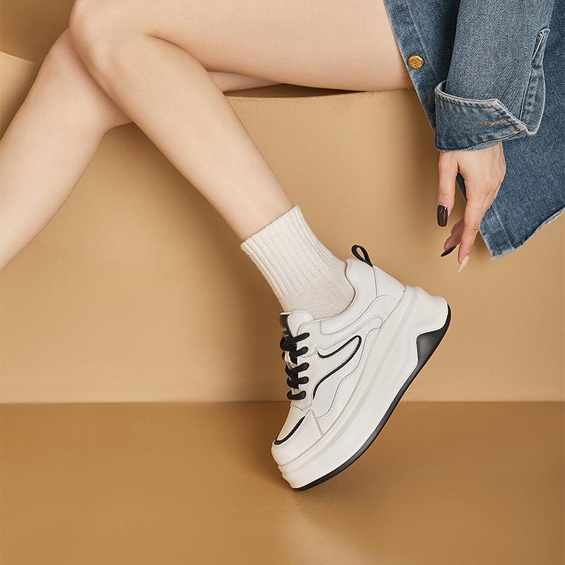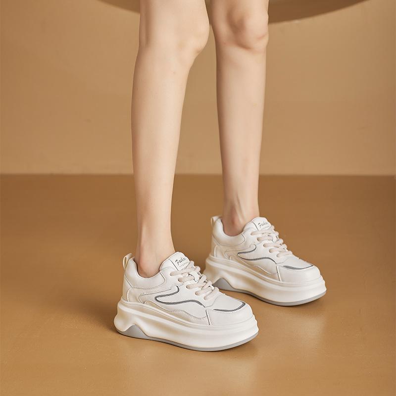 Кожаные туфли на толстой подошве, маленькие белые туфли для женщин, осень 2025, новые туфли-маффины, модные спортивные и повседневные легкие кеды для женщин