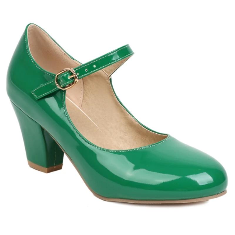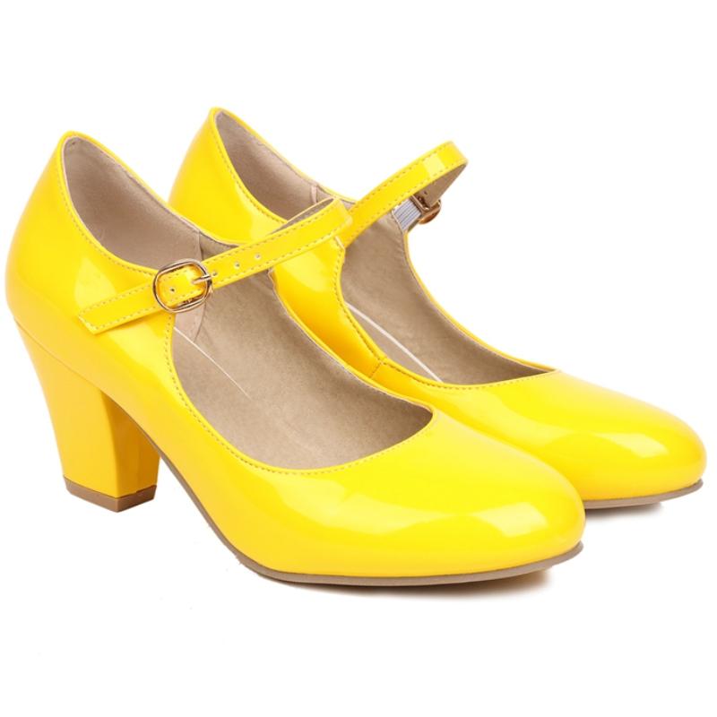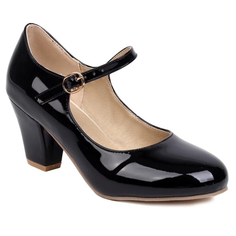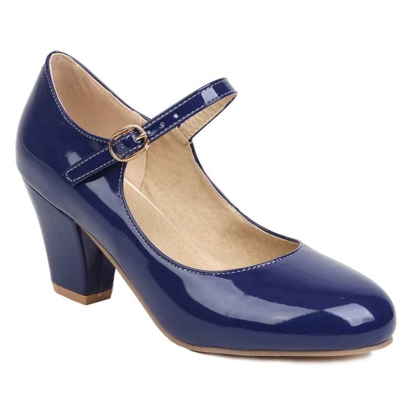 Женские туфли-лодочки на высоком блочном каблуке, большой размер 45, туфли Мэри Джейн в стиле Лолита, элегантные черные, красные, розовые, синие, на каблуке, офисные, свадебные туфли для женщин