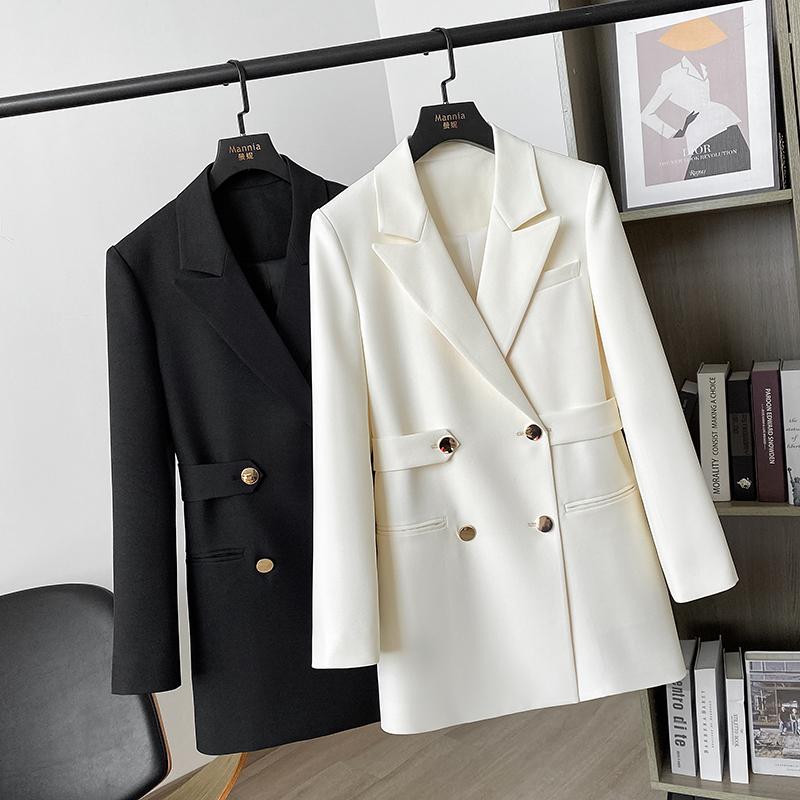 Осенние женские пиджаки, двубортные с зубцами, офисные женские туфли, маленький костюм, формальное черное пальто