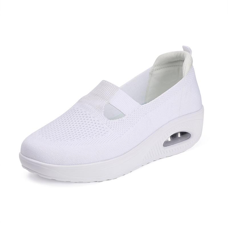 Новая весенне-летняя дышащая повседневная женская обувь из летучей ткани, на танкетке, на платформе, с воздушной подушкой, женская обувь больших размеров, туфли
