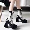 Французский дизайн Туфли-лодочки на высоком каблуке Женские черные туфли Американский стиль Средний каблук Одинарные туфли Полиуретан Улучшенная версия — купить товар онлайн с бесплатной доставкой по всему миру!