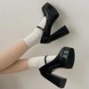 Французский дизайн Туфли-лодочки на высоком каблуке Женские черные туфли Американский стиль Средний каблук Одинарные туфли Полиуретан Улучшенная версия