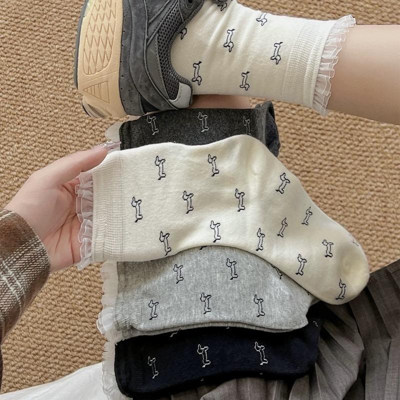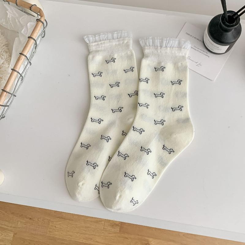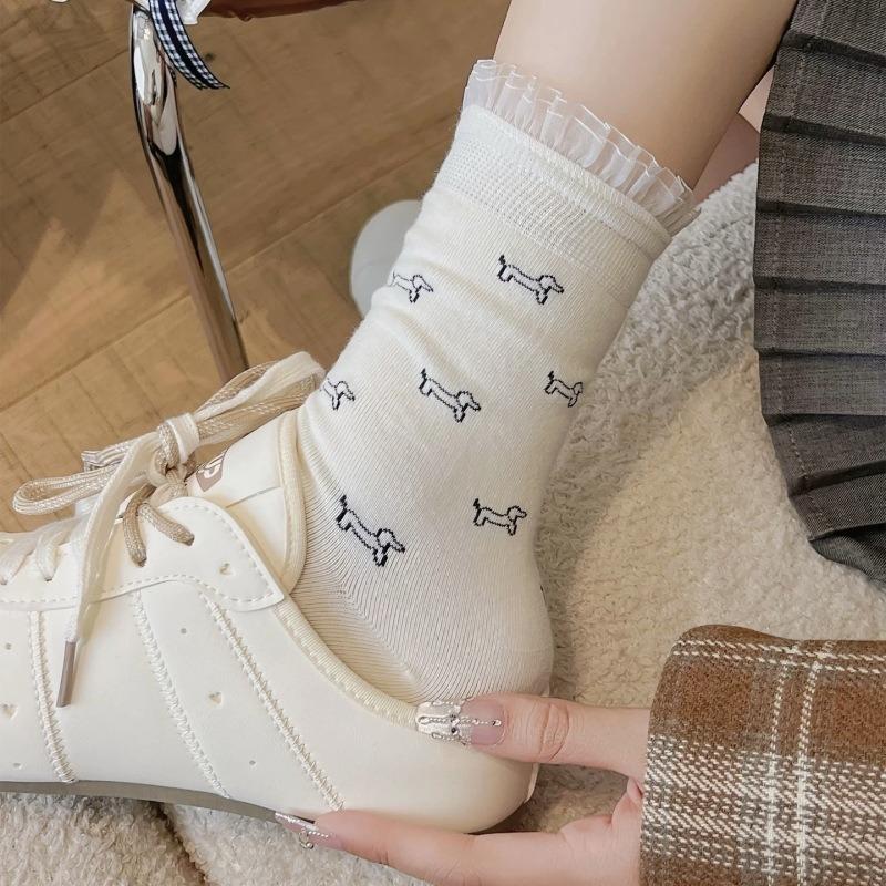 Кружевные носки с бахромой, Милый щенок, Носки-гольфы средней длины, Длинные носки, Носки из чистого хлопка
