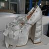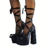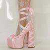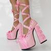2025 Новые Лолита Розовые Сандалии Милые Ремешки Платформа Толстый Каблук Большой Размер 47 Женские Туфли Атласный Бант Шнуровка Модные Сандалии