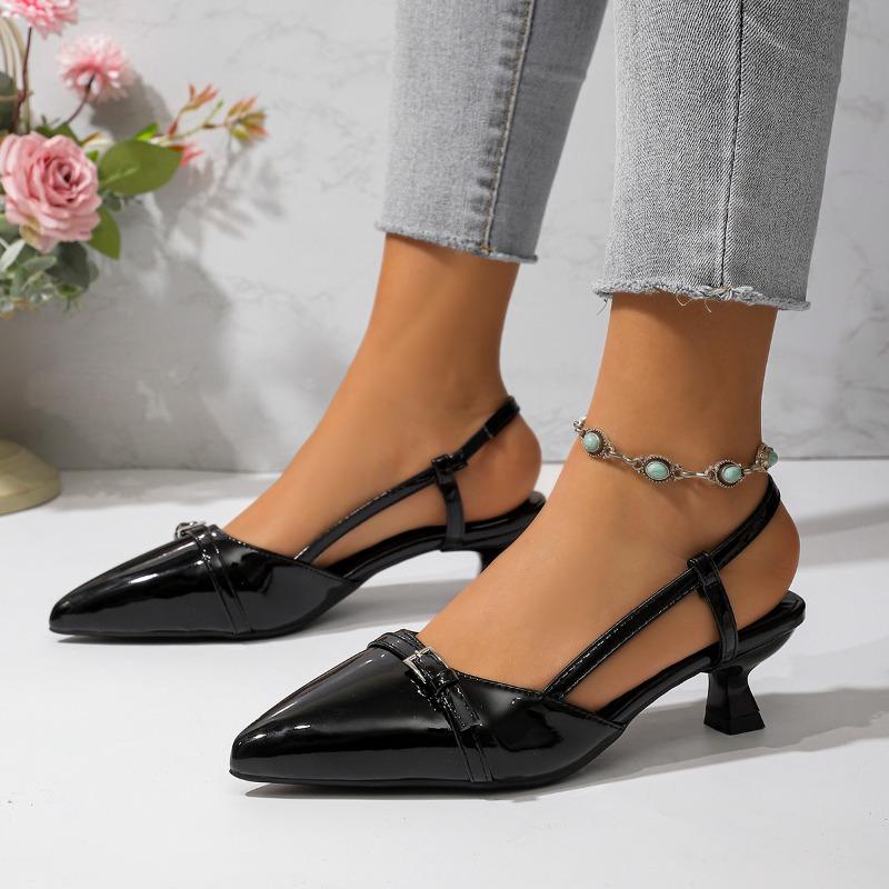 2025 Новые Модные Летние Сандалии-Мюли из Лакированной Кожи с Острым Носком и Средним Каблуком для Женщин, Ретро Тонкий Каблук, Открытая Пятка