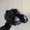 Мужские кожаные туфли на толстой подошве с квадратным носком, платформа 3,5 см, на шнуровке, летняя повседневная обувь на массивном каблуке, черные туфли для увеличения роста