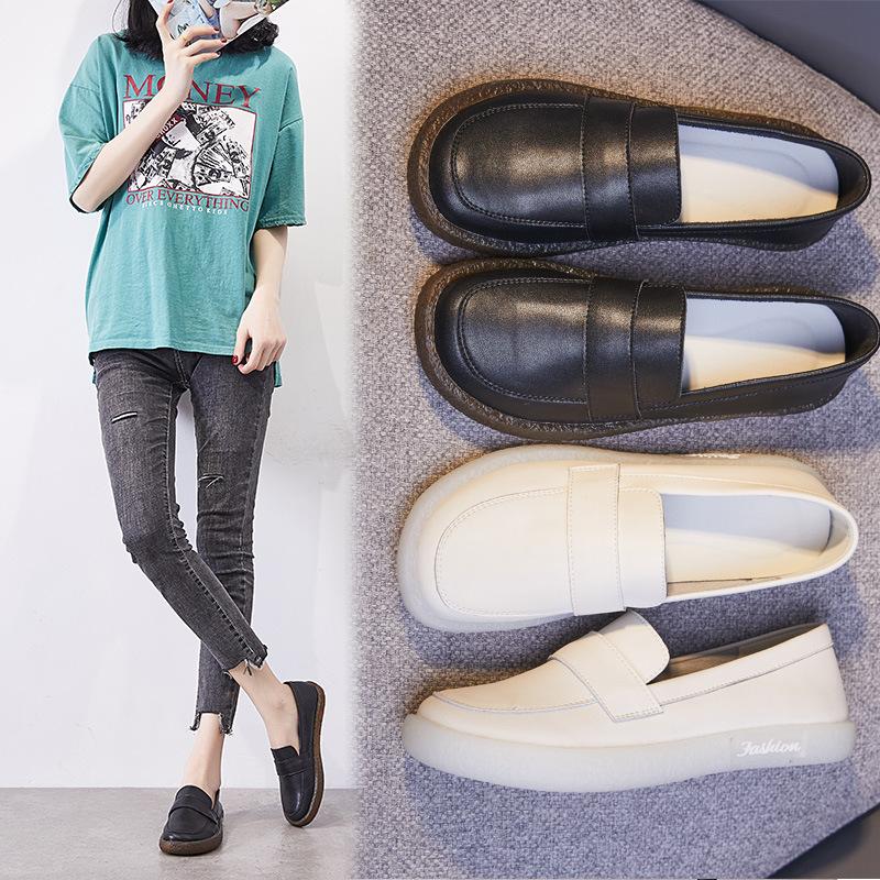Новые женские удобные повседневные туфли против ударов, из мягкой кожи, осенние туфли, противоскользящая плоская подошва, одинарные туфли