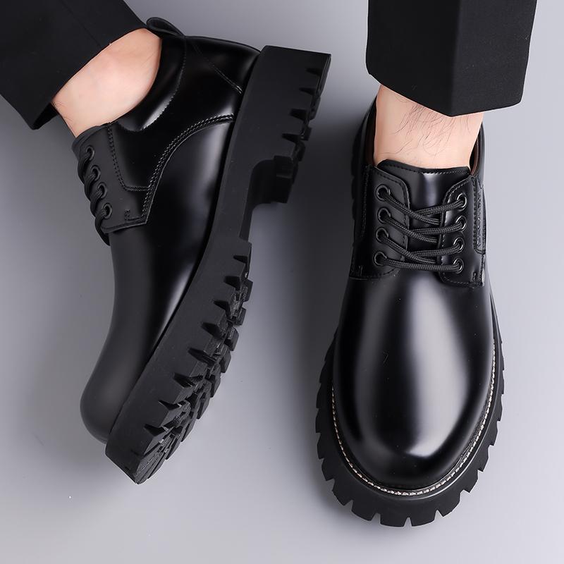 Повседневная деловая мужская кожаная обувь Минималистичные и модные стили дизайна Уличная обувь для улицы Взрослая обувь на толстой подошве Классическая черная обувь