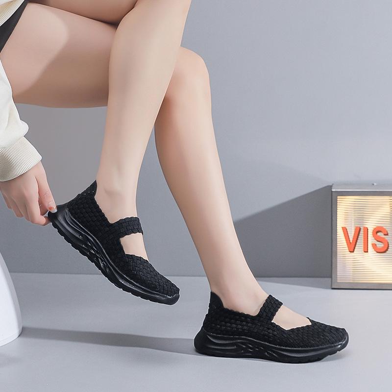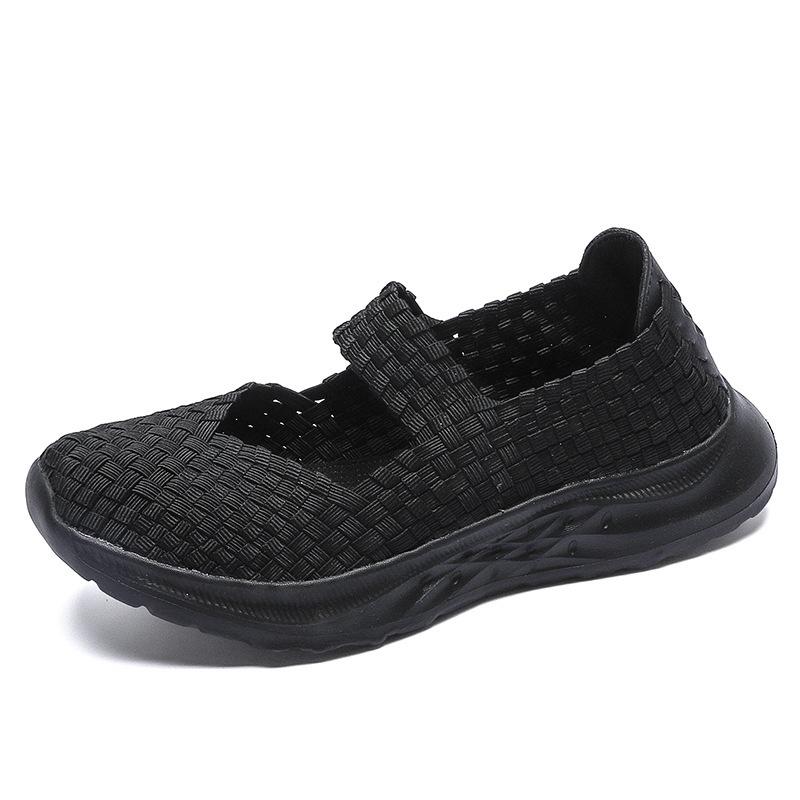 Новая большая размерная плетеная вручную женская обувь повседневная дышащая полая одинарная обувь ультралегкая сетчатая обувь на плоской подошве галоши