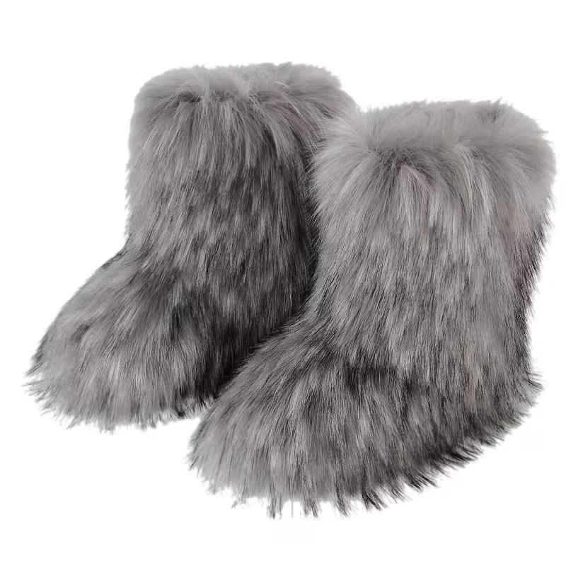 Пушистые ботинки до середины икры в стиле Y2K Зимние женские модные сапоги Теплые хлопковые туфли