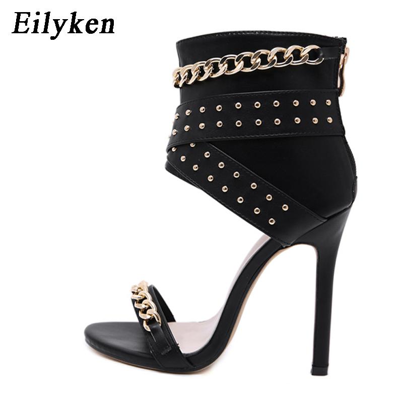 Eilyken Клепки Металлическая Декорация Чехол Высокий Каблук Сандалии Ботинки Для Женщин Вечеринка Гладиатор Черный Женская Обувь Размер 35-42