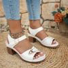Винтажные босоножки на среднем высоком каблуке, женские повседневные босоножки с золотой металлической отделкой, женские 2025 лето, с ремешком на щиколотке, мягкие туфли для мамы