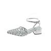 2025 Роскошные сандалии с узким ремешком из стразов Женские элегантные с острым носком на низком каблуке с ремешком на щиколотке Вечерние туфли для дам