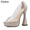 Eilyken Новый Дизайн ПВХ Прозрачные Стразы Платформа Женские Туфли-Лодочки Пип-То носок Закрытый Высокий Каблук Вечеринка Свадьба Женская Обувь