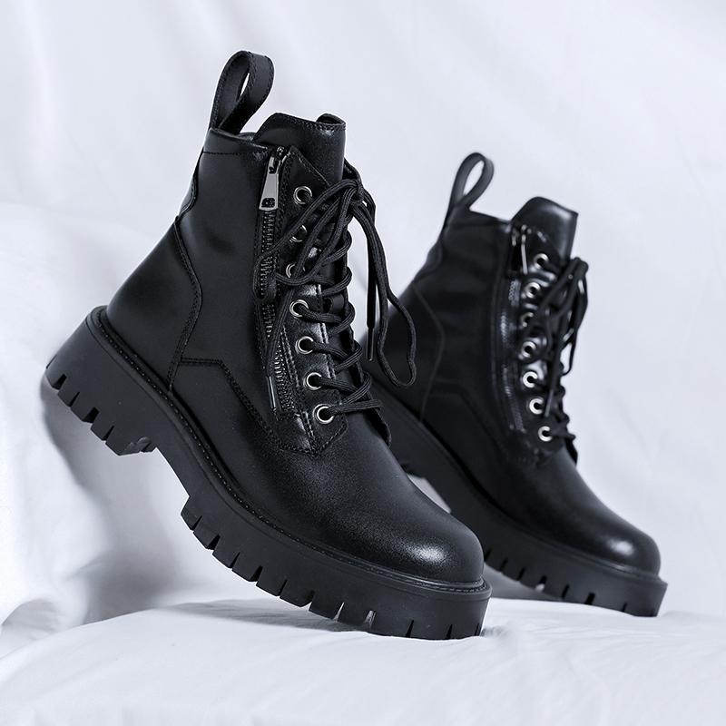 2025 Осень Зима Толстая Основа Полусапоги Мужские Ботинки в Британском Стиле Ботинки на Высокой Подошве Корейская Повседневная Обувь Мотоциклетные Ботинки для Мужчин