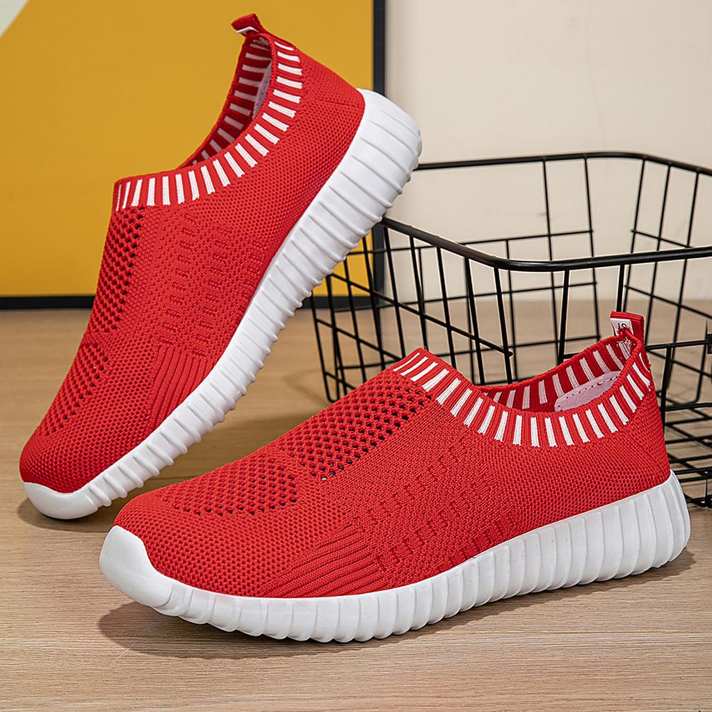 Новые весенние повседневные спортивные туфли большого размера женские европейские и американские с круглым носком на плоской подошве из вязаной сетки повседневные одинарные туфли