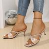 Роскошные сандалии-слайды с цепочкой из блесток, ремешком-бантом, женские, лето 2025, с квадратным носком, на высоком каблуке, сексуальные, для вечеринки, для платья, женские