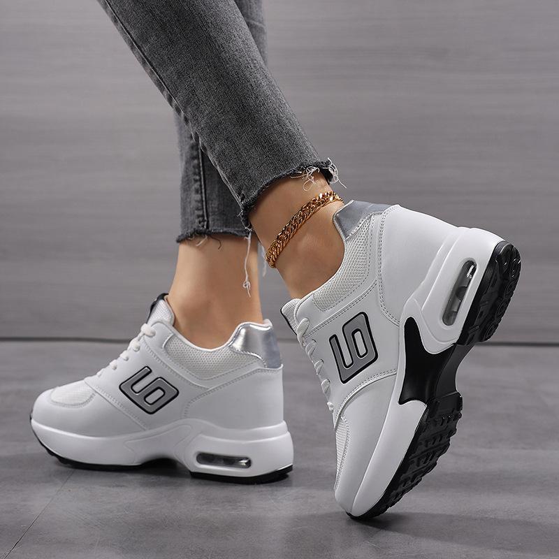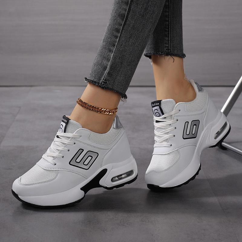 Женские спортивные туфли на толстой подошве с мягкой подошвой и внутренней платформой, увеличивающей рост. Женские см показывают ноги. Маленькие популярные женские туфли. Туфли на танкетке для путешествий и повседневной носки.