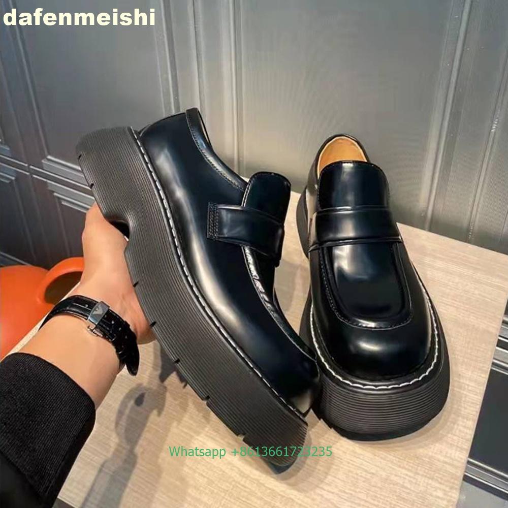 Весна 2025 Новые лоферы Женские Натуральная кожа Увеличивающие рост Мягкая Толстая подошва Повседневная Кожаная обувь Круглый носок Черные/темно-зеленые туфли