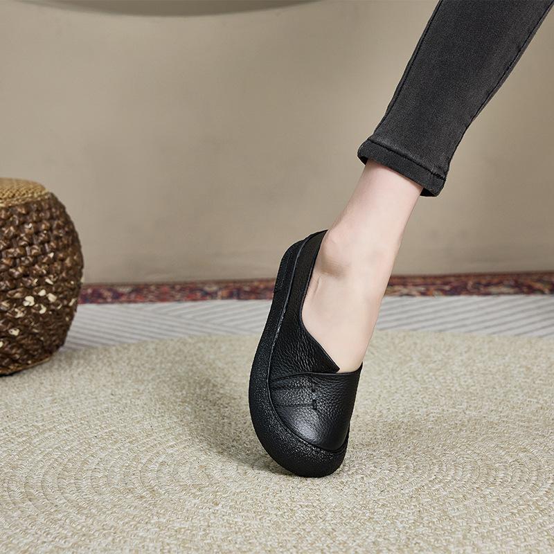 Первый слой коровьей кожи 2025 туфли-лодочки с одним ремешком для женщин среднего и пожилого возраста из натуральной кожи, женские туфли на плоской подошве с неглубоким вырезом, на мягкой подошве, в стиле ретро