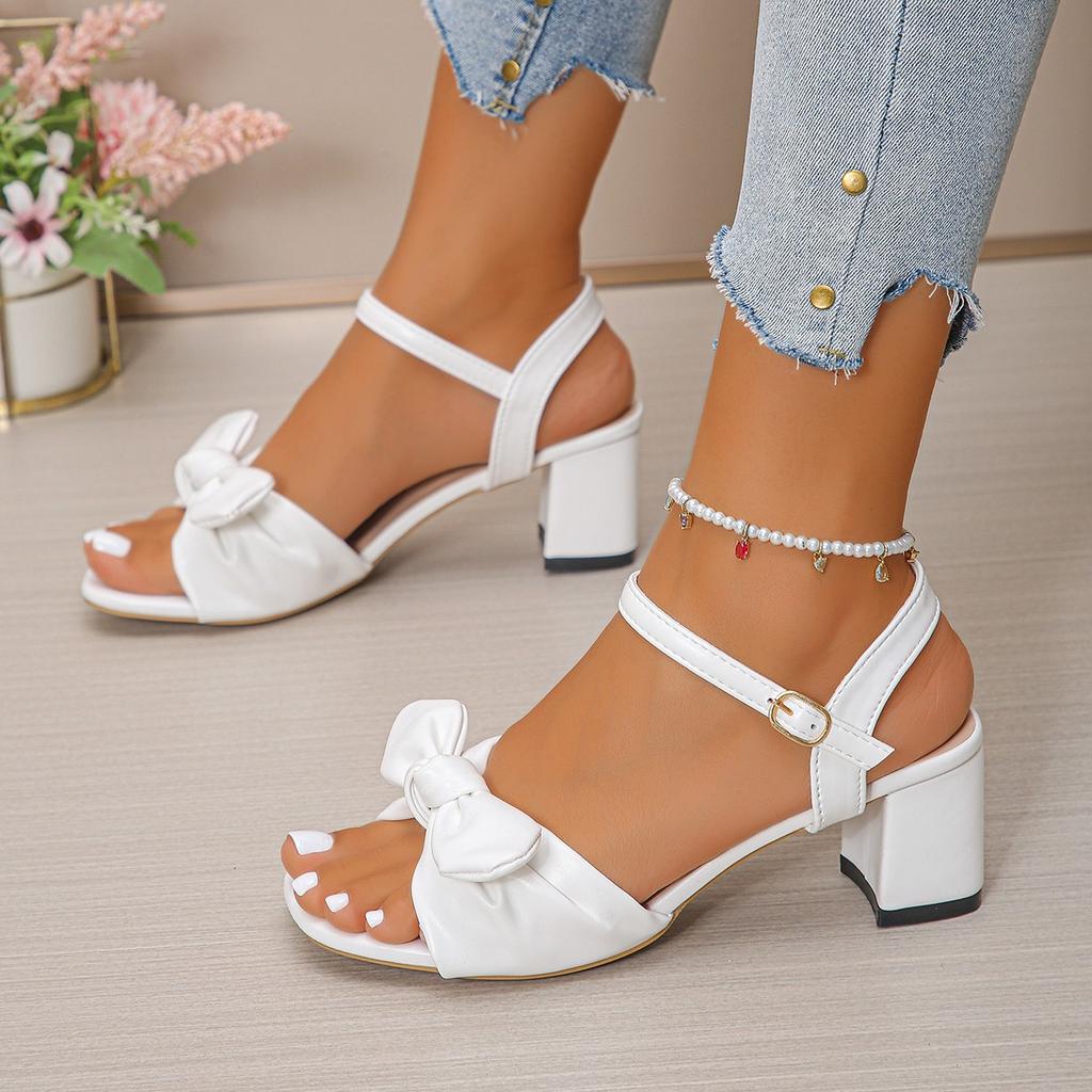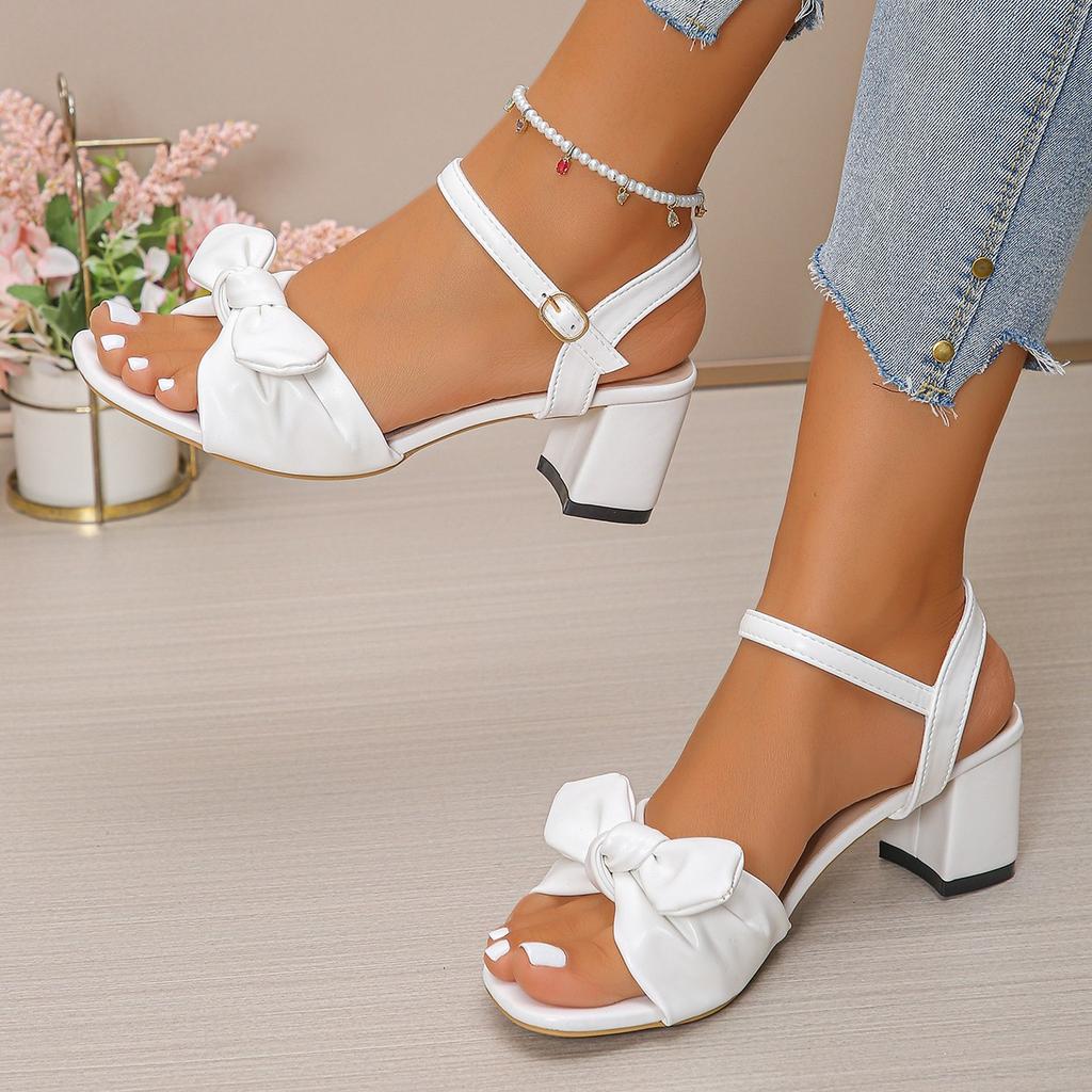 Толстый высокий каблук открытый носок задний ремешок с пряжкой бант водонепроницаемая платформа всепогодные удобные нескользящие сандалии для женщин
