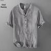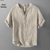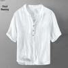 Мужская летняя льняная футболка с V-образным вырезом - Короткий рукав, Свободный крой, Ретро китайский стиль