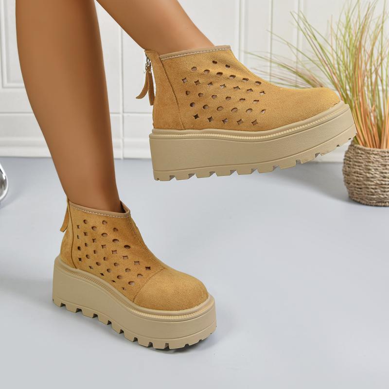 Массивные ботильоны на толстой платформе для женщин 2025, хаки, замшевые, с молниями сзади, летние ботинки с вырезами, обувь больших размеров