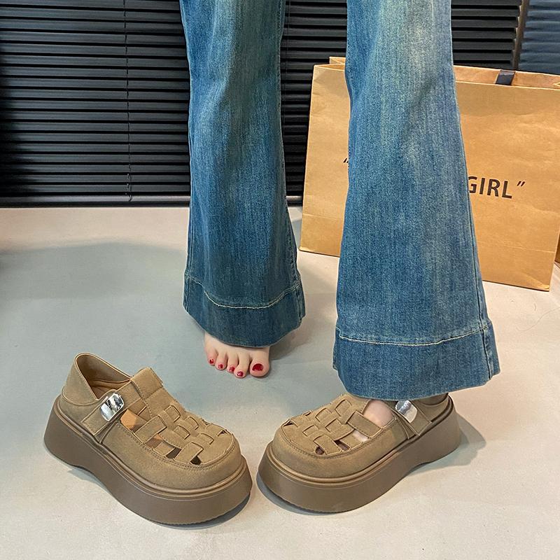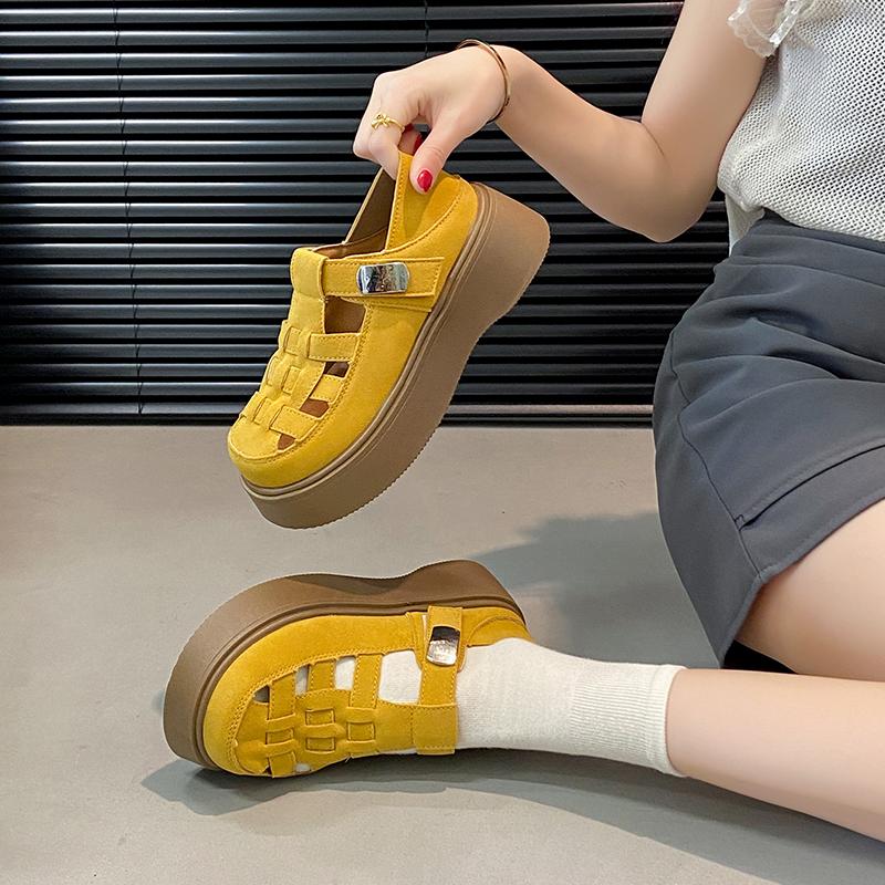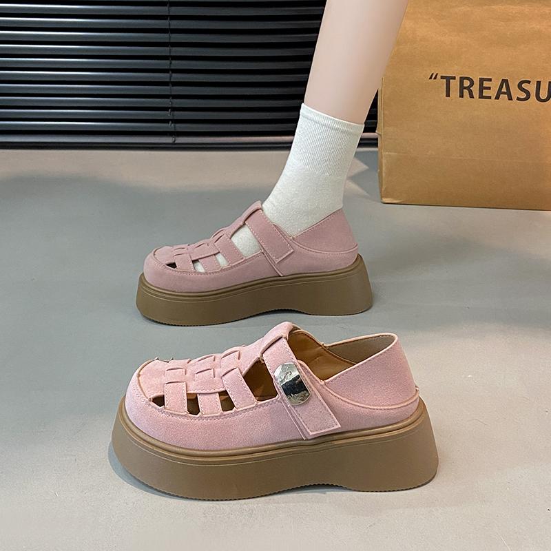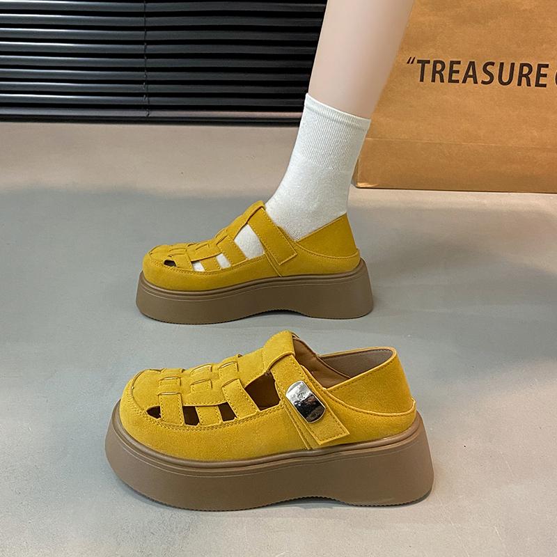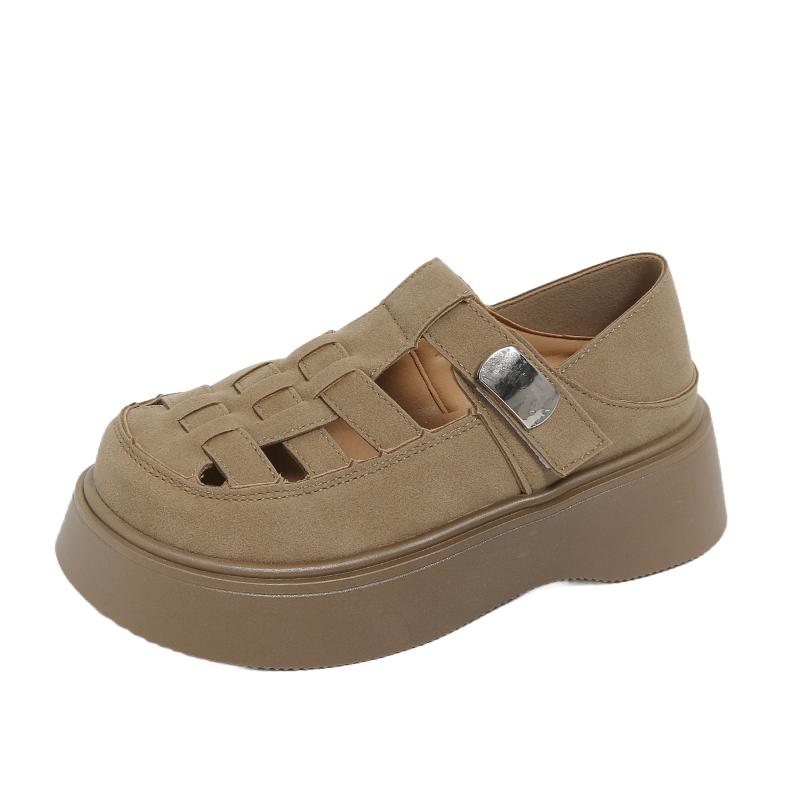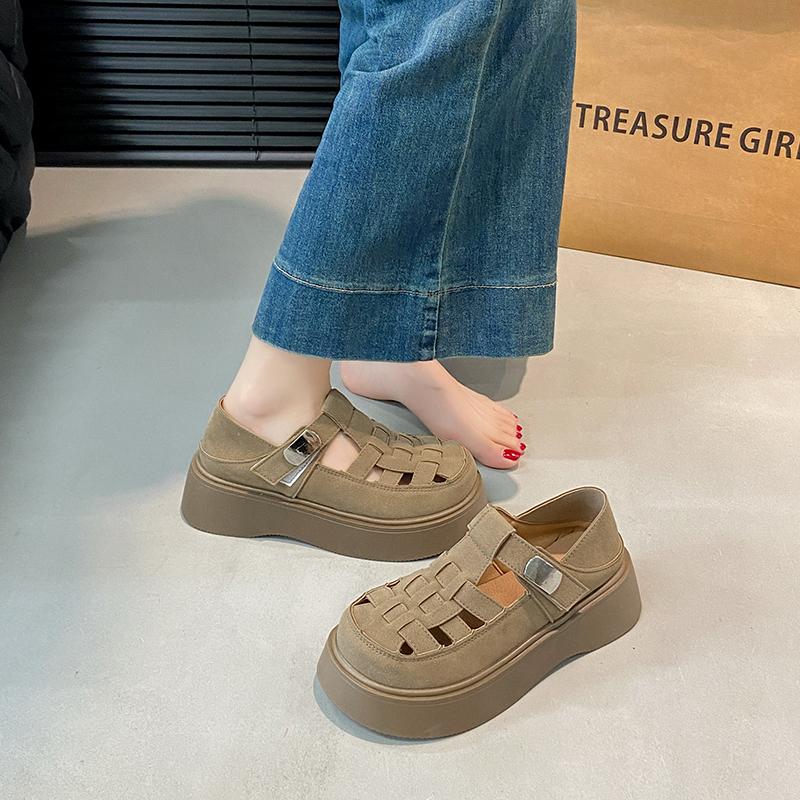 Летние женские замшевые сандалии 2025 года, модная толстая подошва, уличные, противоскользящие, с пряжкой, дышащие, женские универсальные туфли