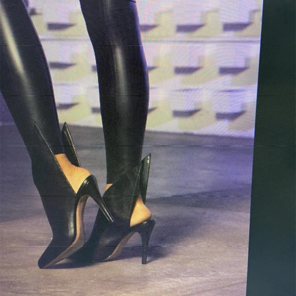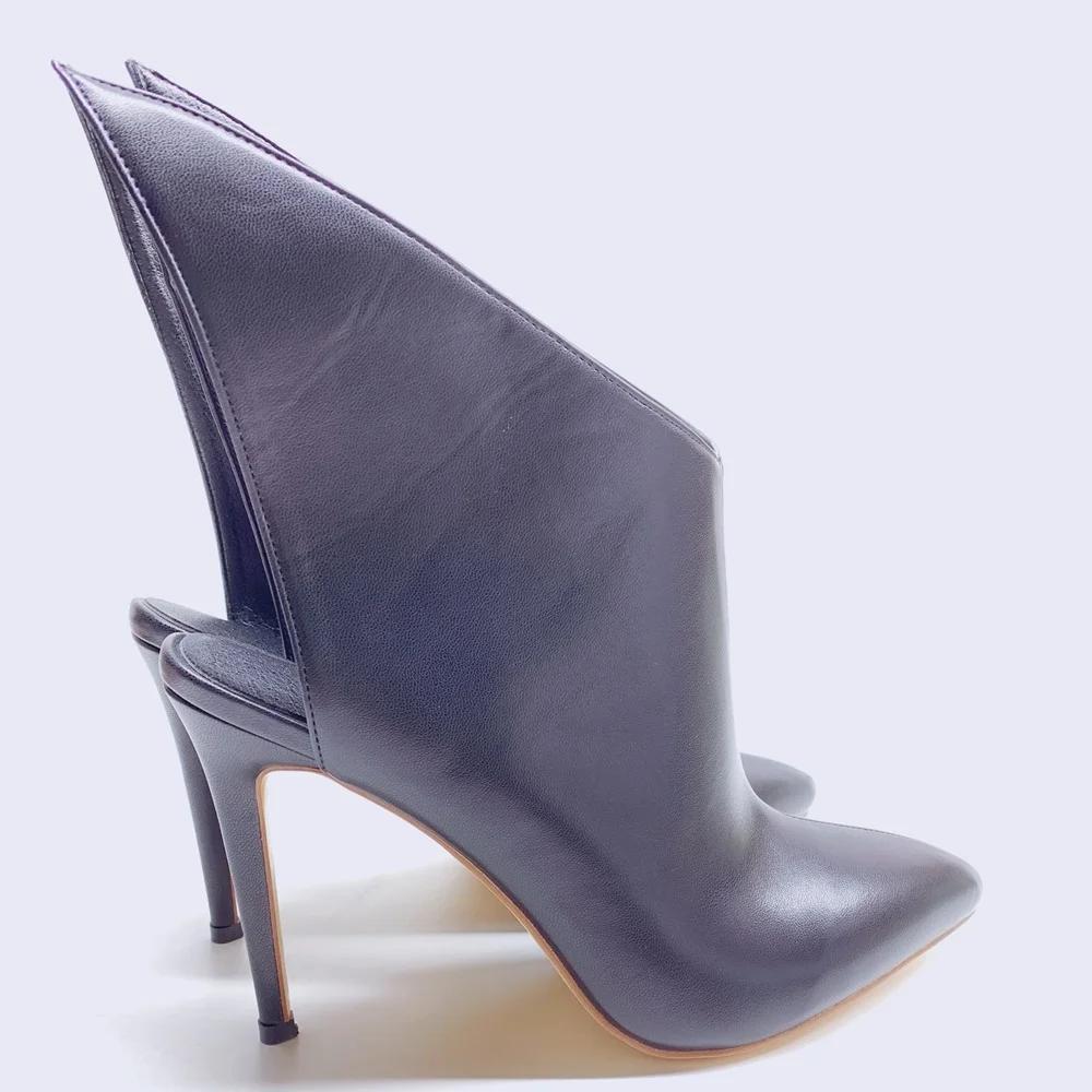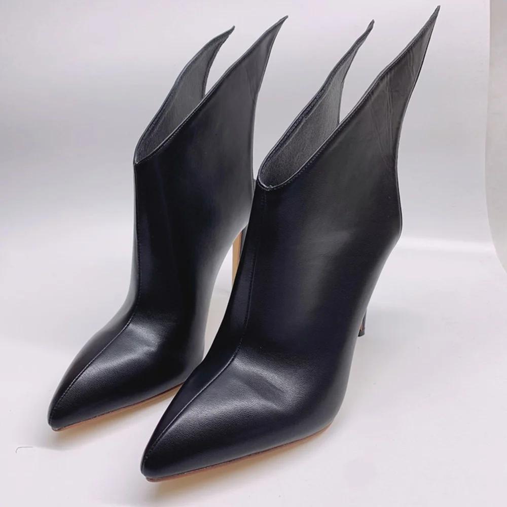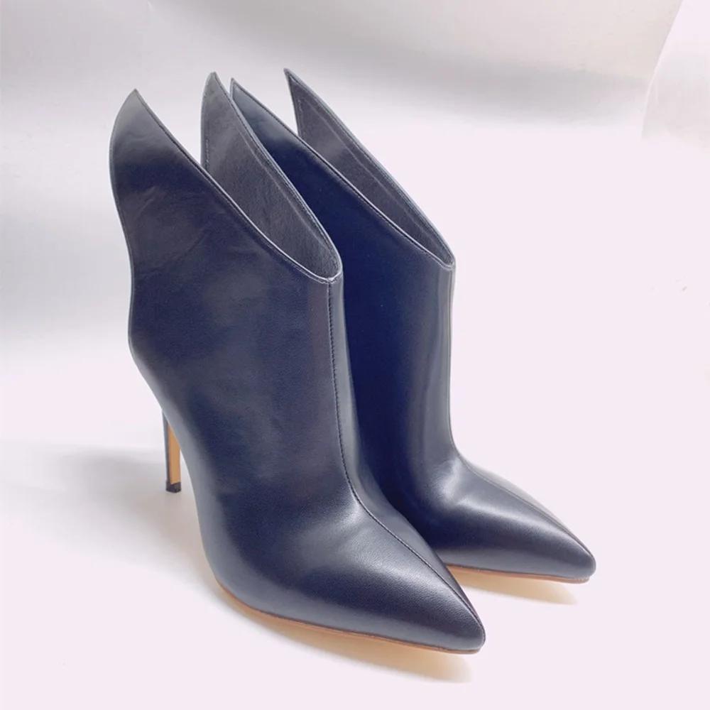 Зимние ботинки Острый носок Крыло Шпилька Слипоны Женские Черный ПУ 2025 Новые Ботильоны Большой размер 45