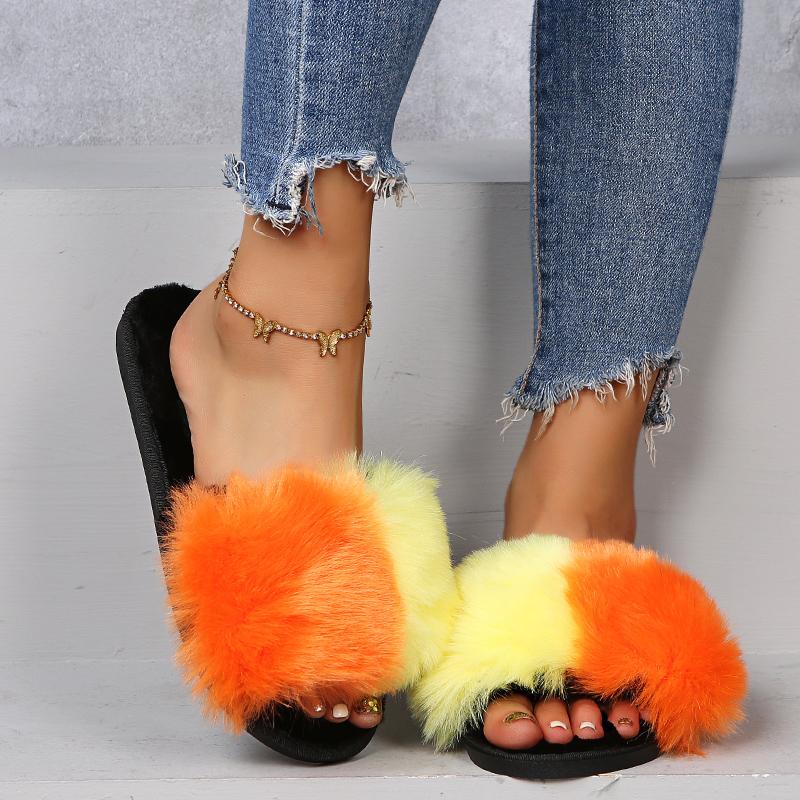 Плюшевые разноцветные ремешки Слайды Женские 2025 Черные на плоской подошве Тапочки Женские Повседневные Легкие Ежедневная обувь Большой размер 43