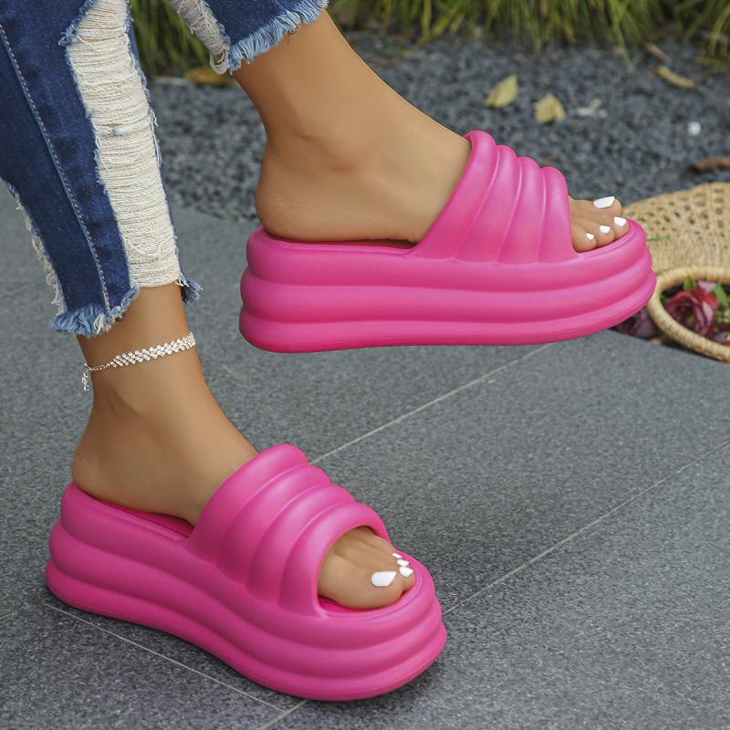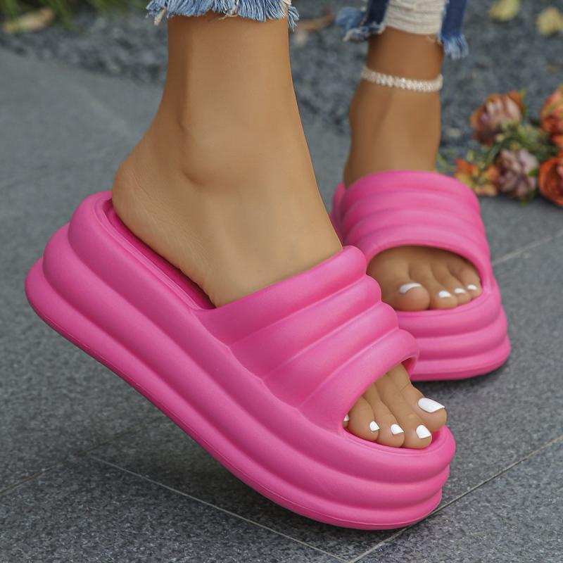 Сексуальные розовые танкетки-шлепанцы женские толстые пляжные шлепки 2024 лето высокое качество женские EVA нескользящие уличные сандалии
