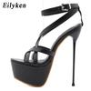 Eilyken Новые женские босоножки с узким ремешком и открытым носком 2025 лето Полые Подиум Стриптизер Платье Высокий каблук Женская обувь