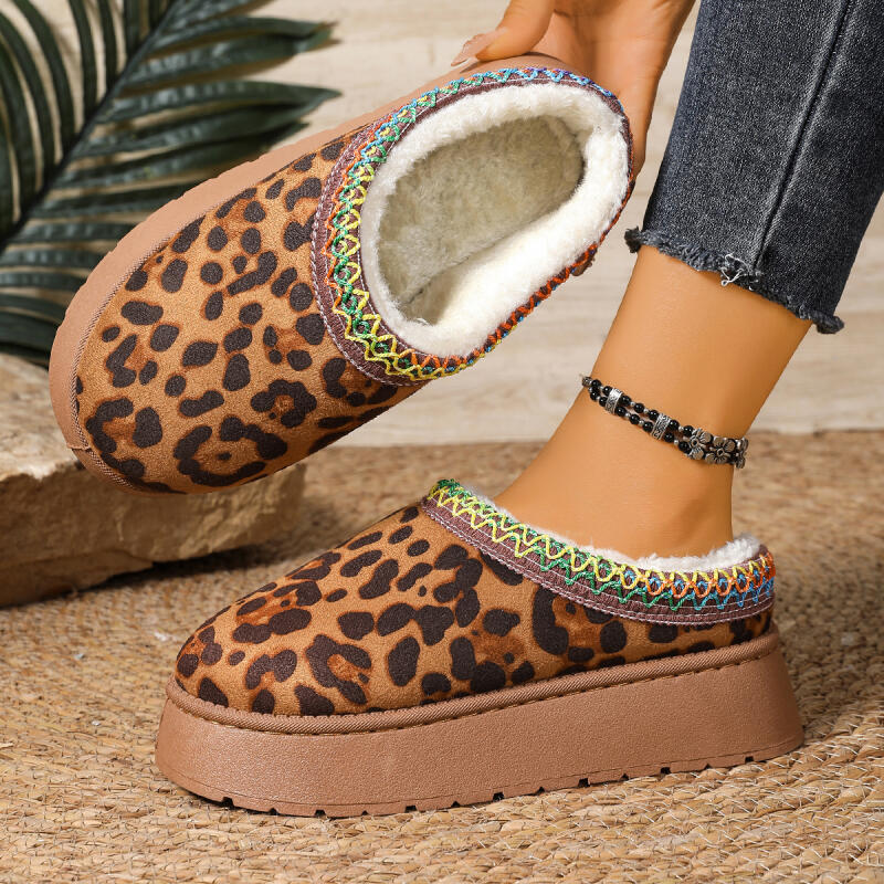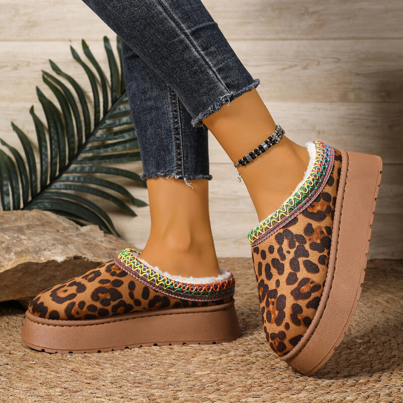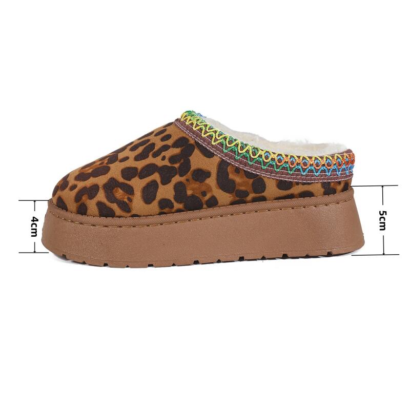 Теплые плюшевые леопардовые тапочки на толстой подошве Женские 2025 Зимние на массивной платформе, танкетке, пушистые домашние тапочки, мягкая нескользящая обувь