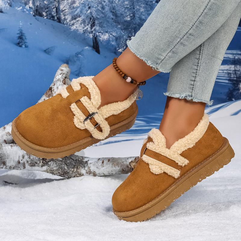 Мягкая толстая подошва, пушистые повседневные туфли, женские 2025, зимние теплые, короткий плюш, балетки, металлическая пряжка, нескользящие, зимние ботинки для женщины