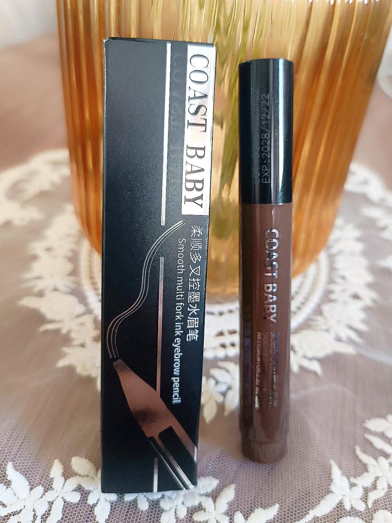 Маркер для бровей COAST BABY: * Тип продукта: Тинт-маркер с эффектом микроблейдинга. * Особенность: Аппликатор с несколькими зубчиками позволяет рисовать тонкие волоски, создавая естественный вид. * Оттенок: Тёмно-коричневый (графитовый), без рыжины — идеально для холодного подтона. * Упаковка: Лаконичный чёрный дизайн; формат удобен для быстрого макияжа. Итог: Удачное решение для тех, кто хочет густые и графитичные брови за пару минут.